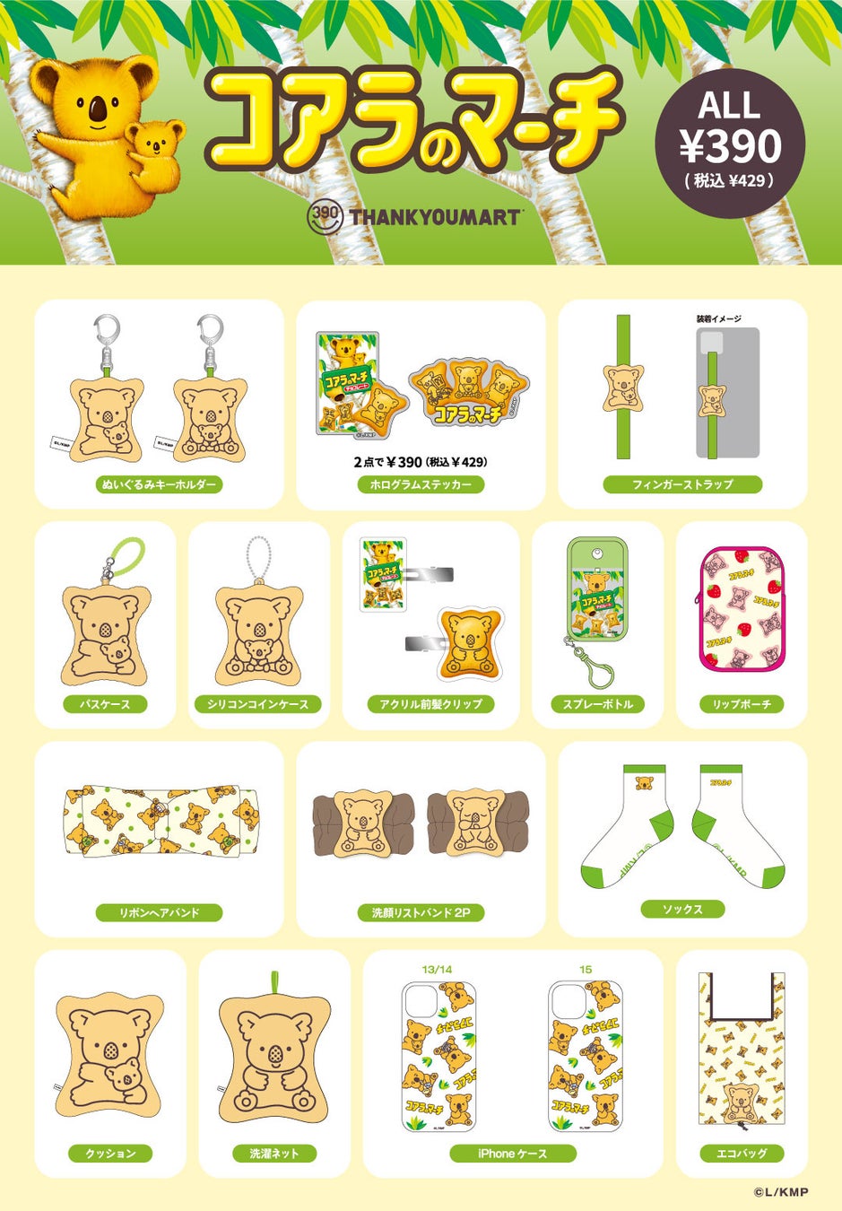 今回は、パッケージでお馴染みのコアラのマーチデザインや、まるでお菓子のような本物そっくりアイテムまで、サンキューマートだけの限定アイテムを企画しました。