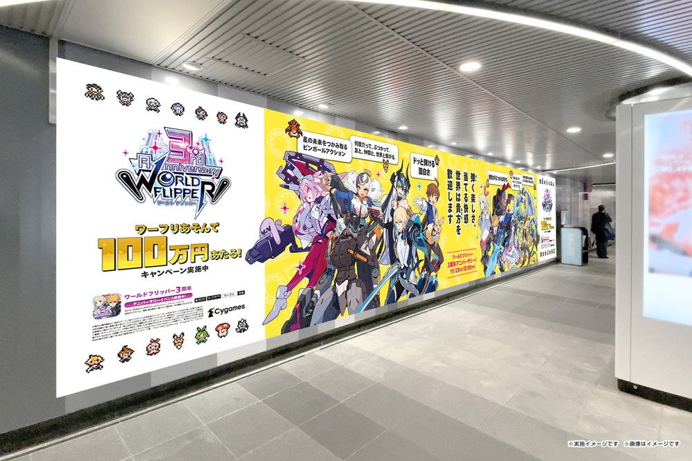 『ワールドフリッパー』3周年を記念した広告を東急田園都市線渋谷駅に掲出いたします。