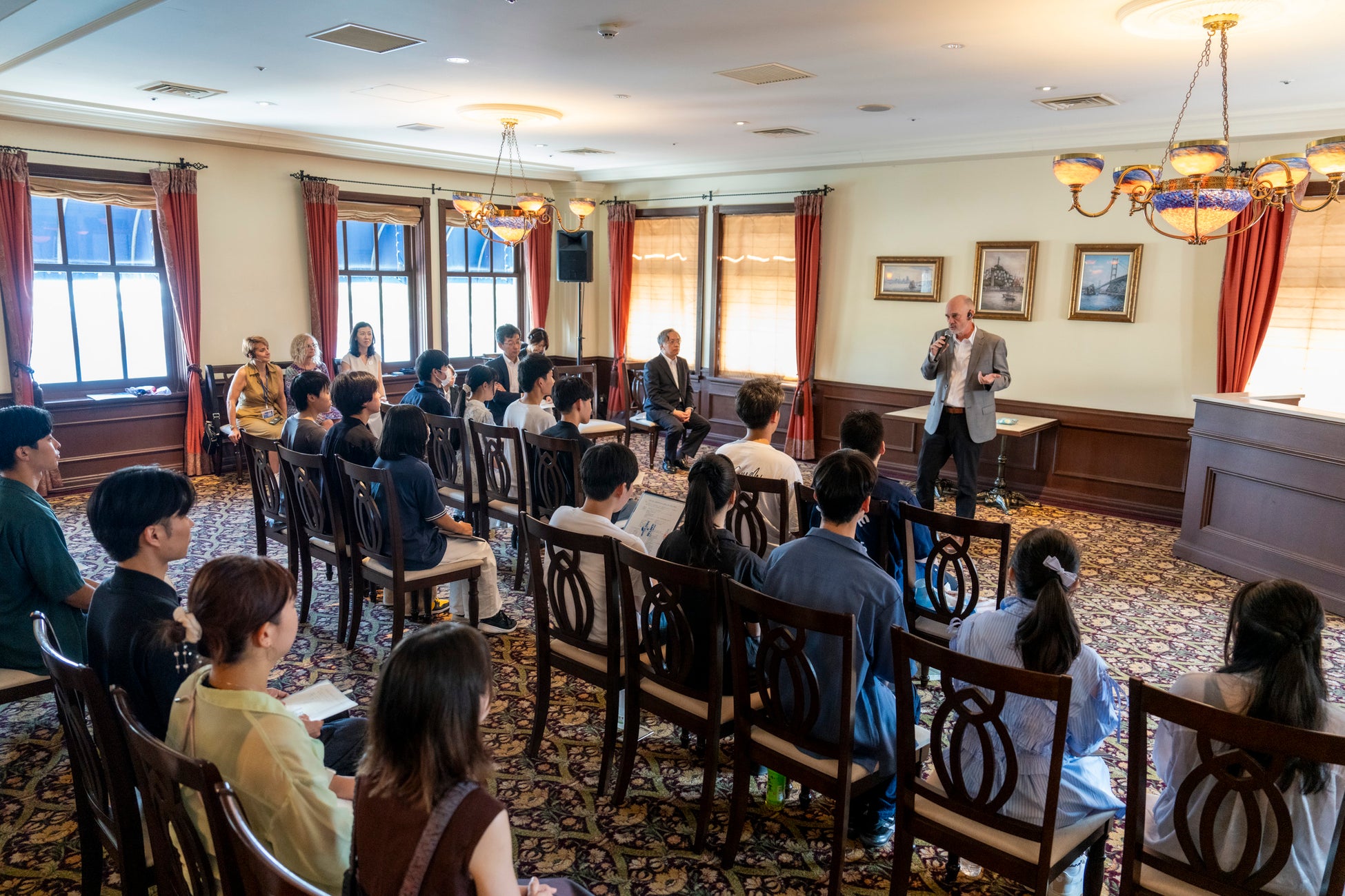 合同会社ユー・エス・ジェイ 社長CEOのJ.L. ボニエからは「ユニバーサル・スタジオ・ジャパンという楽しい場所で皆さんをお迎えでき、とても嬉しく感じています。この奨学金制度はコミュニティと共にあるためにも非常に重要なものです。学業を続けるには大変なことが付き物ではありますが、多くの可能性を秘めた、夢に向かって頑張る皆さんを、心から応援しています。」と応援の言葉がかけられました。