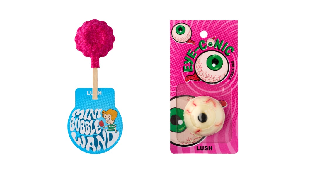 ラッシュが今回のトリックスコレクションで目指しているのは、バスルームに古き良き遊び心を取り戻すこと。「トリック」は、名前の通りすべてのアイテムに捻りを利かせています。スライム状に変化する入浴料、刺激的な香りのトウガラシエキス入りリップスティック、バラの香りのする「うんち」ソープ、目玉をモチーフにしたバブルバーなど、ユニークなアイテムを取り揃えました。