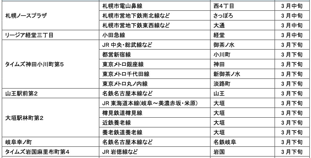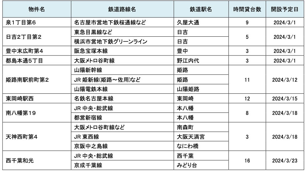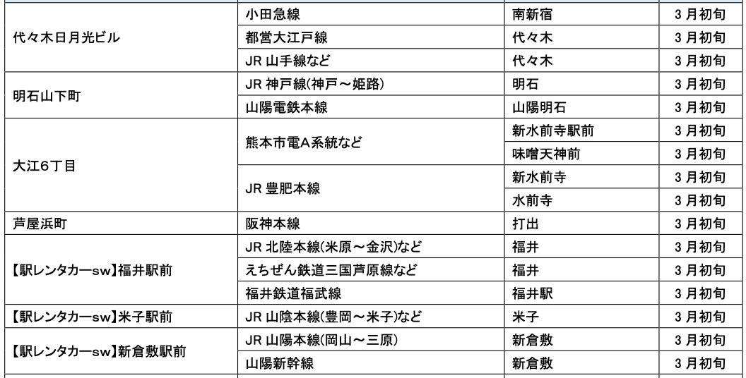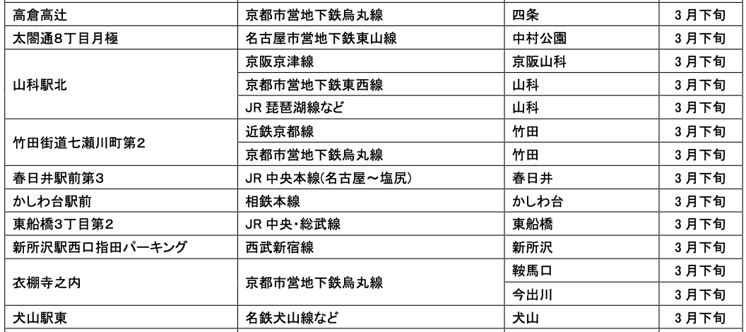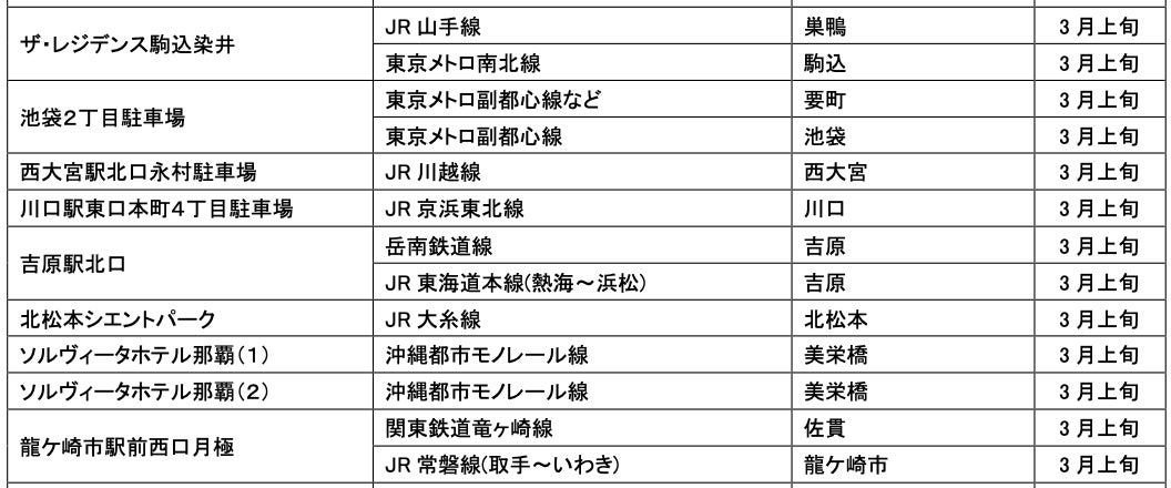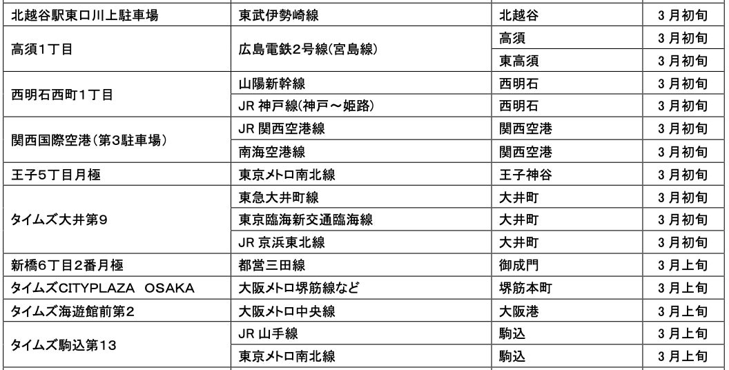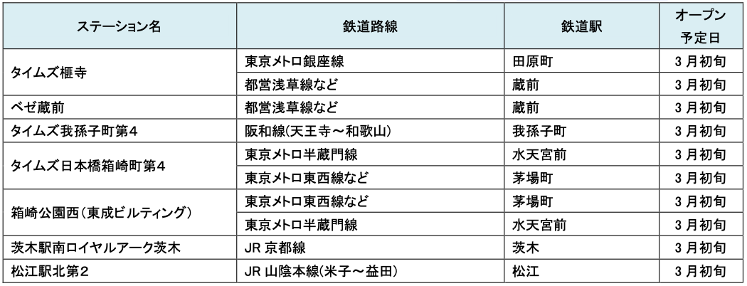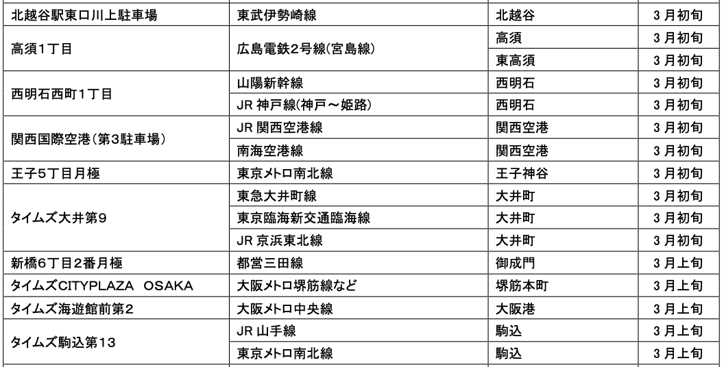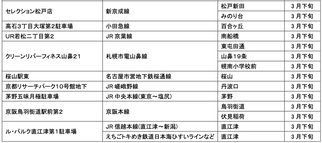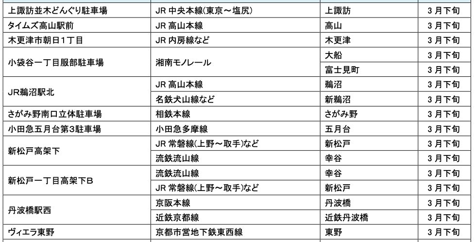3月にオープンおよびオープン予定の「パーク&ライド」が可能な駐車場は9件、「レール&カーシェア」が可能なステーションは151件です。