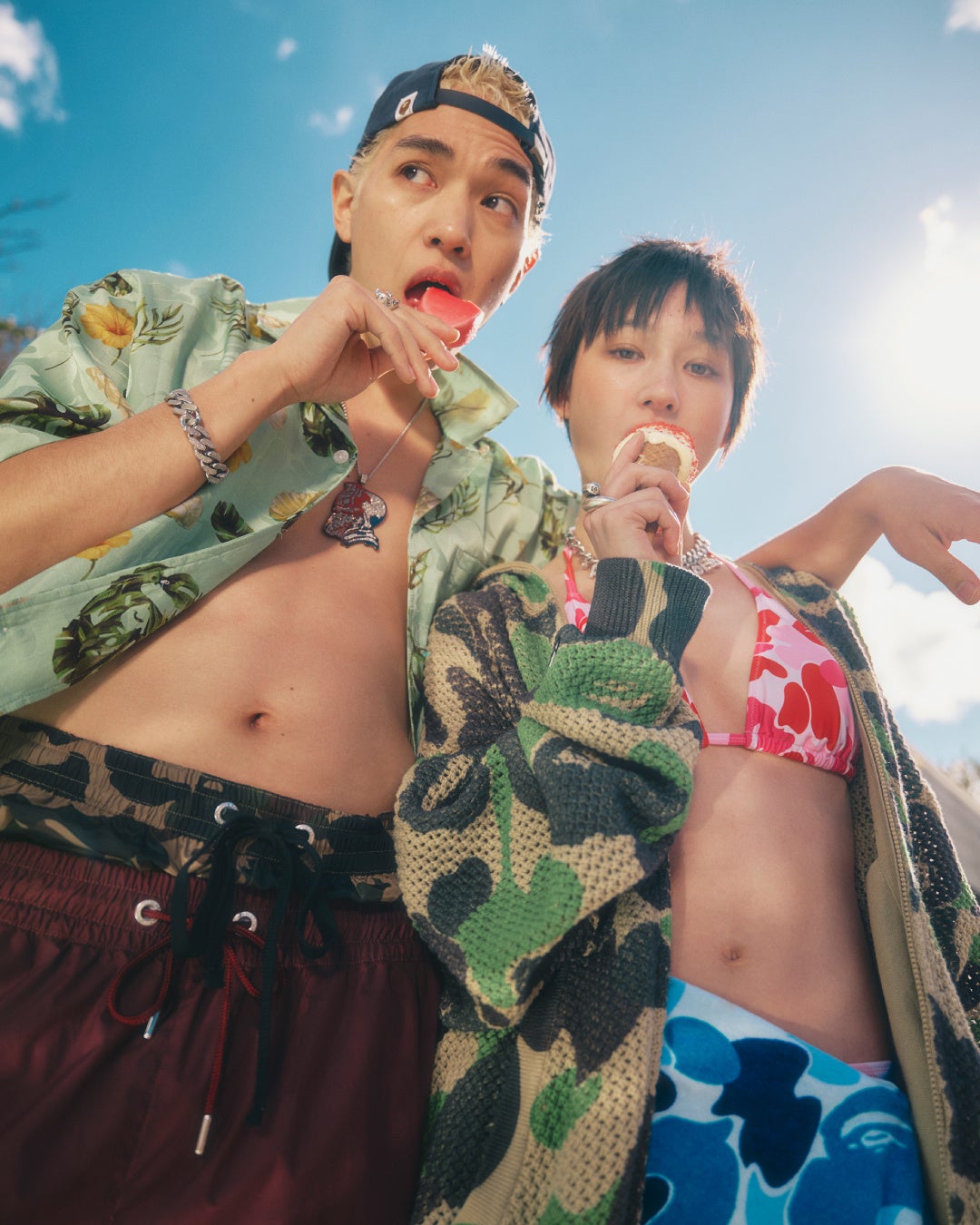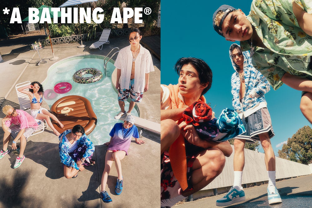 BAPE®のアイコニックな要素とトレンドの要素をミックスし、パーティーやビーチなどのサマーシーンにぴったりのアイテムが揃っています。