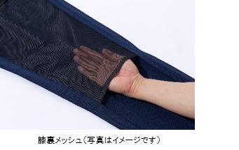 通気度100cc(従来品は40cc)の高い通気性を実現。蒸れを抑えて快適な着心地に。膝裏はメッシュ素材でベタつきを軽減してくれます。