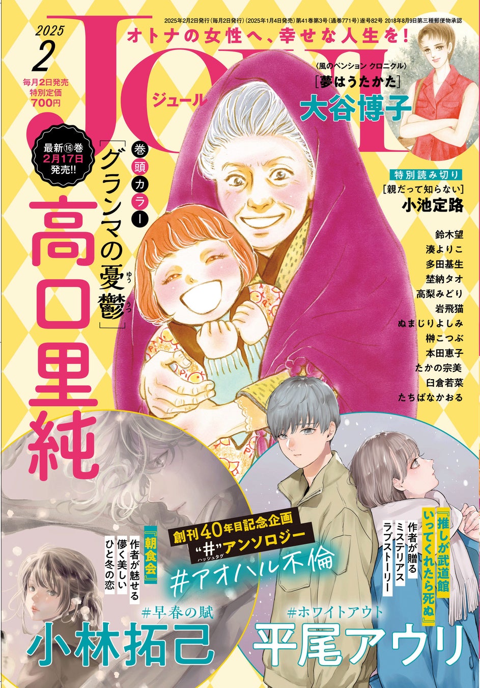 また、『キラキラしても、しなくても』で高校生たちの繊細な感情を巧みに描き話題となった、小池定路先生が読み切りでJOUR初登場! 小池先生の温かく柔らかい持ち味が存分に光る新作はファン必読です。JOUR2月号をぜひお見逃しなく!