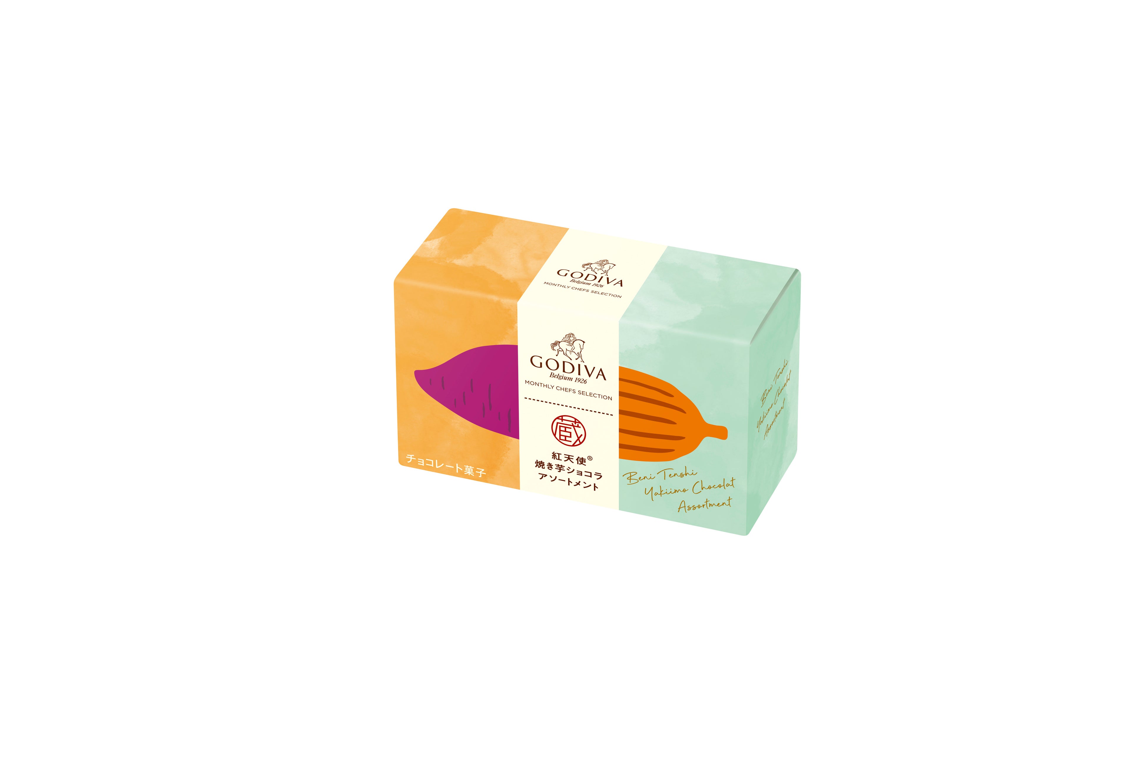 「ゴディバ マンスリー シェフズ セレクション」の新商品は、カルビーかいつかスイートポテト株式会社とのコラボレーションから誕生した、「紅天使® 焼き芋ショコラ」です。冷やして食べても美味しい、お芋とチョコレートのマリアージュを夏のひとときにお楽しみください。