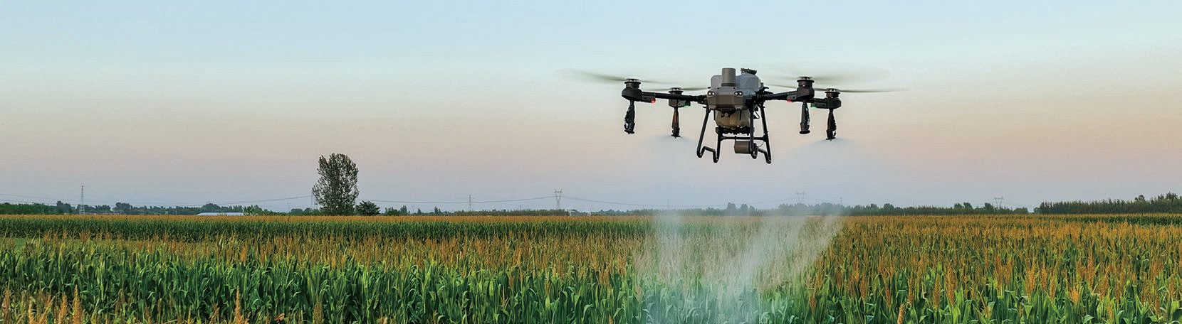 DJI Agras T25 は、最大20kgのタンク容量を備えた農業用ドローンです。散布装置にアトマイザーを採用し、均一かつ微細な噴霧形状と液滴形状により精密な散布を実現します。さらに農業用ドローンでは初となるビジョンセンサーを搭載しているため、障害物を回避し安全に飛行することができます。従来は別のドローンで行っていた航空測量にも対応し、リアルタイムで圃場のマップ構築から散布までを速やかに行うことができます。バッテリー効率も向上したため、15分で160Lの連続散布が可能になりました。