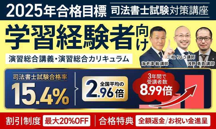 2025年合格目標!司法書士試験演習総合講義/演習総合カリキュラム(フル・ライト)リリース!