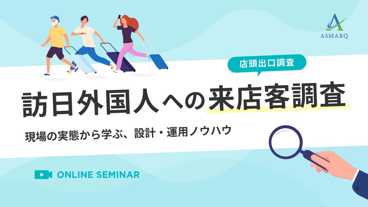 株式会社アスマーク(東京都渋谷区東、代表取締役:町田正一)は、2026年4月21日(火)13:00に、「訪日外国人を対象とした来店客調査」をテーマに、調査設計・運用面でのノウハウを現場視点で解説するセミナーを開催いたします。