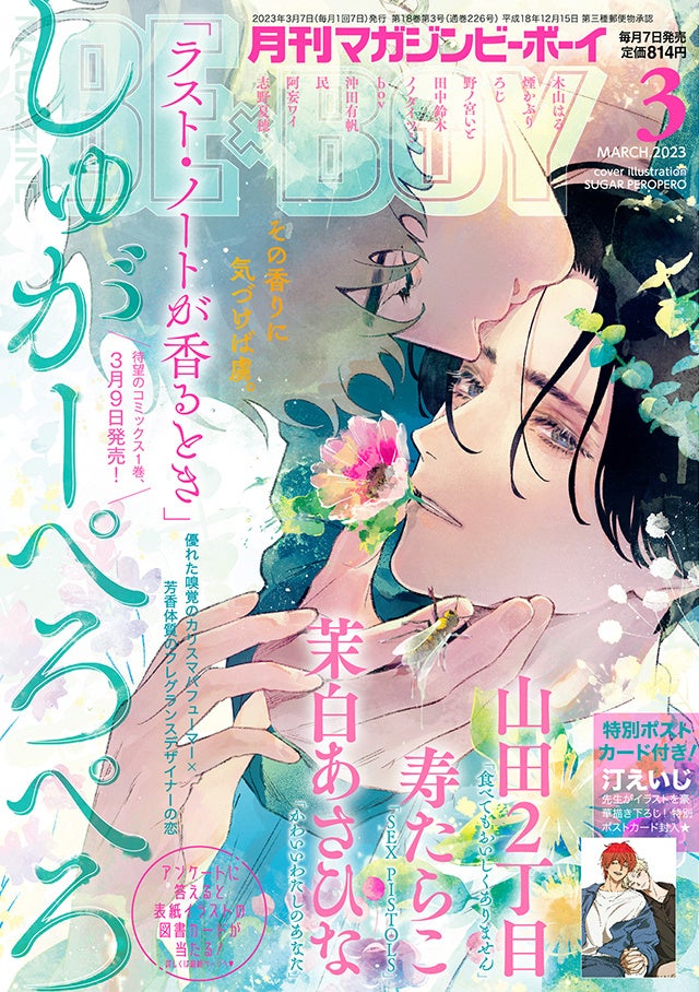 【本日発売】しゅがーぺろぺろ先生「ラスト・ノートが香るとき」が表紙で登場!マガジンビーボーイ3月号は2月7日発売!