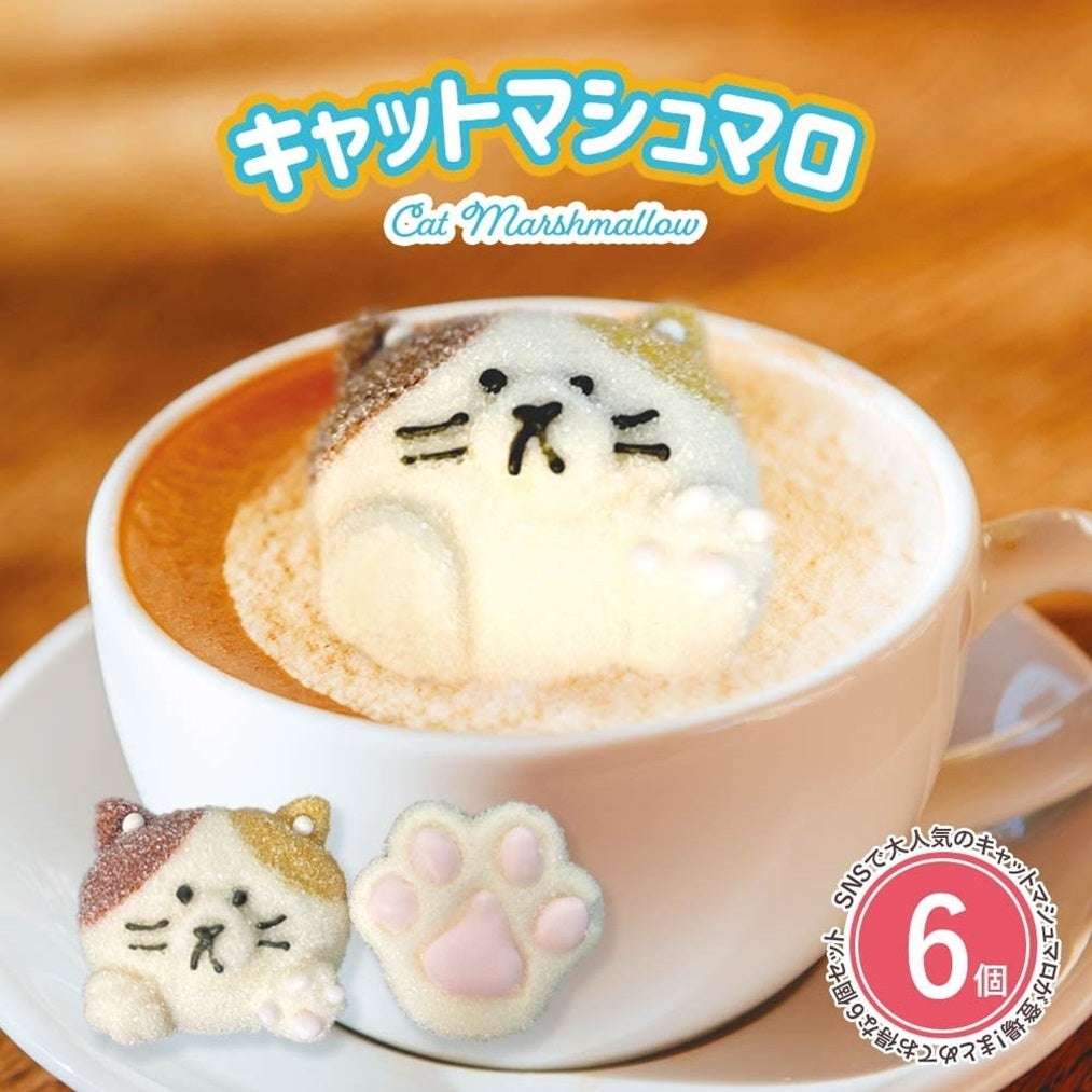 かわいい猫の顔と手がセットになったマシュマロ。