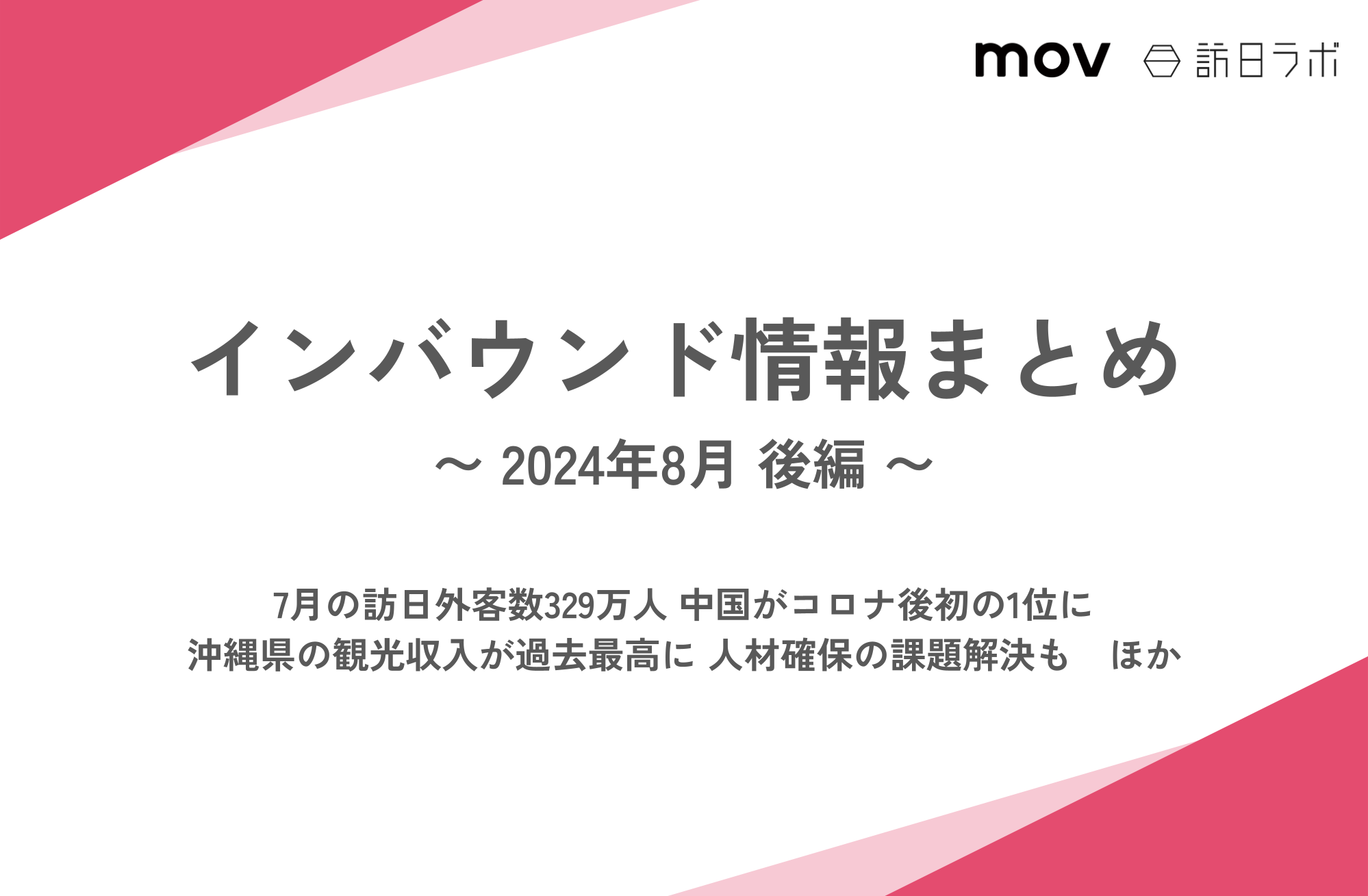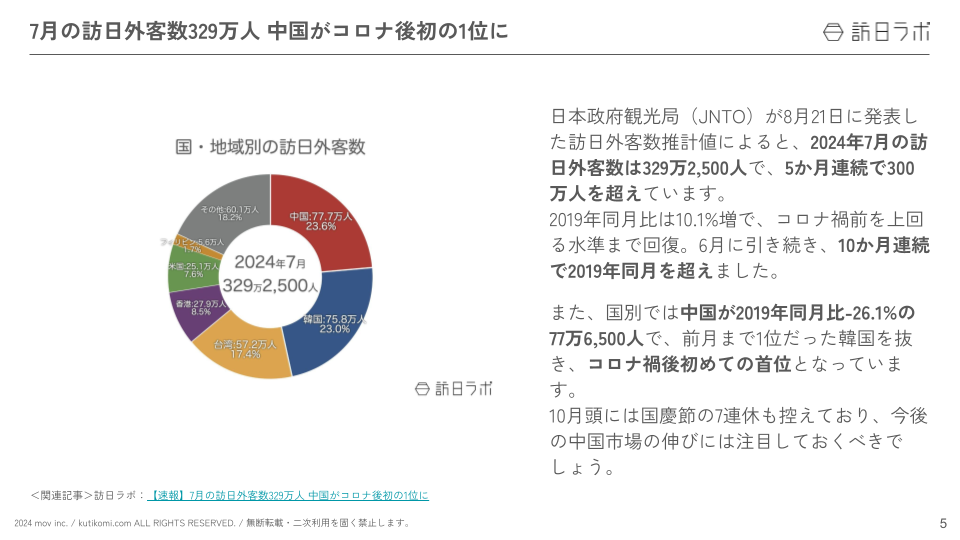 7月の訪日外客数329万人 中国がコロナ後初の1位に:観光・インバウンドの最新動向がわかる!インバウンド情報まとめ「2024年8月後編」を訪日ラボが公開