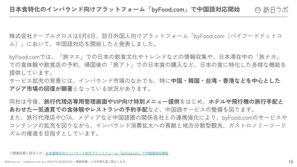 日本食特化のインバウンド向けプラットフォーム「byFood.com」で中国語対応開始