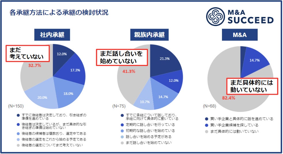 Visionalグループの株式会社M&Aサクシード(所在地:東京都渋谷区/代表取締役社長:金 蓮実)が運営する法人・審査制M&Aマッチングサイト「M&Aサクシード」(https://ma-succeed.jp/)は、従業員数10~300名の企業を経営する300人を対象に、将来の経営に関するアンケート調査を実施し、本日結果を公表します。