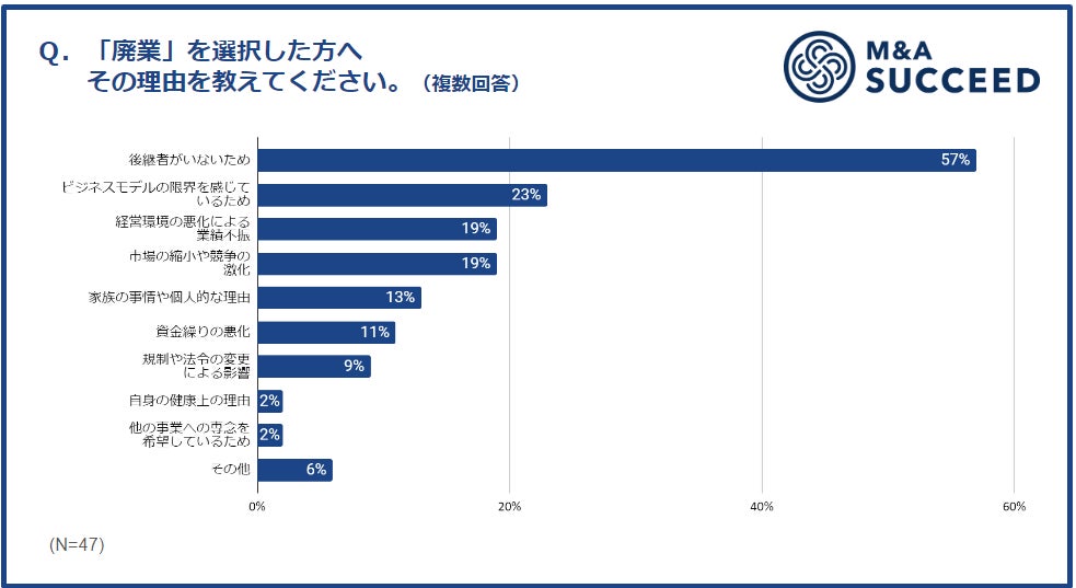 廃業を選択肢に入れている人のうち、過半数が後継者不在を理由に。