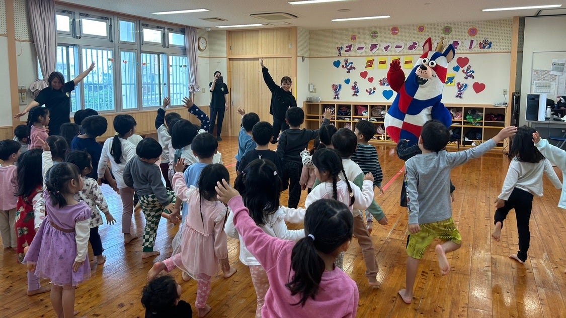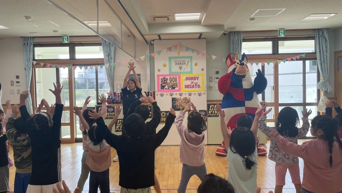 今回訪問した園では、キングスやゴーディーにまつわるクイズや、ダンスやボール遊びを通して体を動かすことの楽しさを体験しながら、園児たちと交流を深めました。