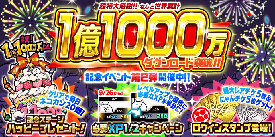 「にゃんこ大戦争」1億1000万ダウンロード突破記念イベント第2弾開催のお知らせ