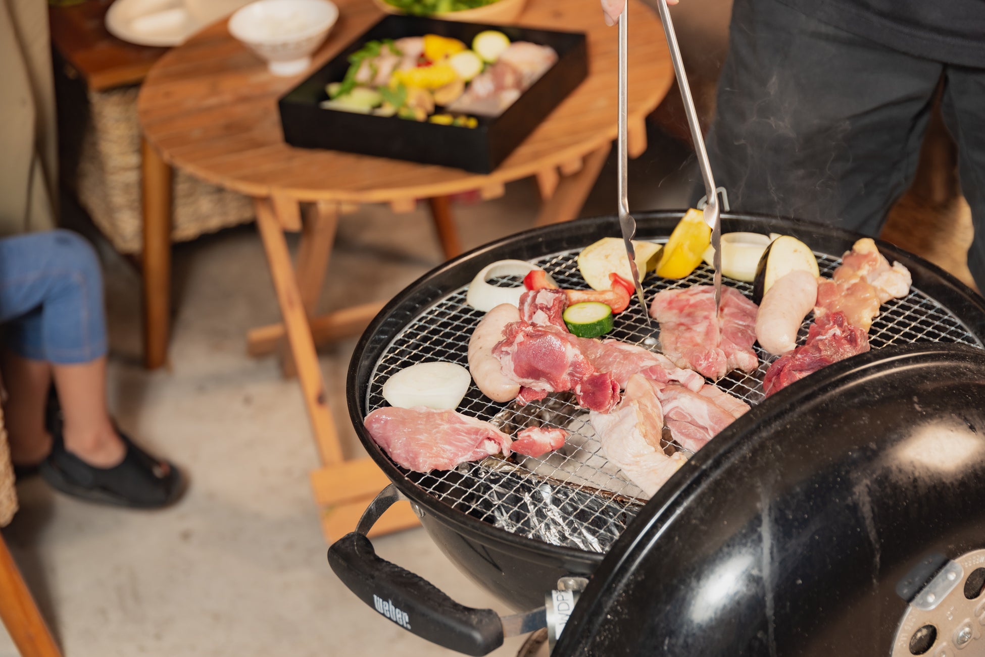 食材を自由に持ち込みOK。機材・炭・調味料など一式は完備されており、気軽に本格BBQを楽しめます。