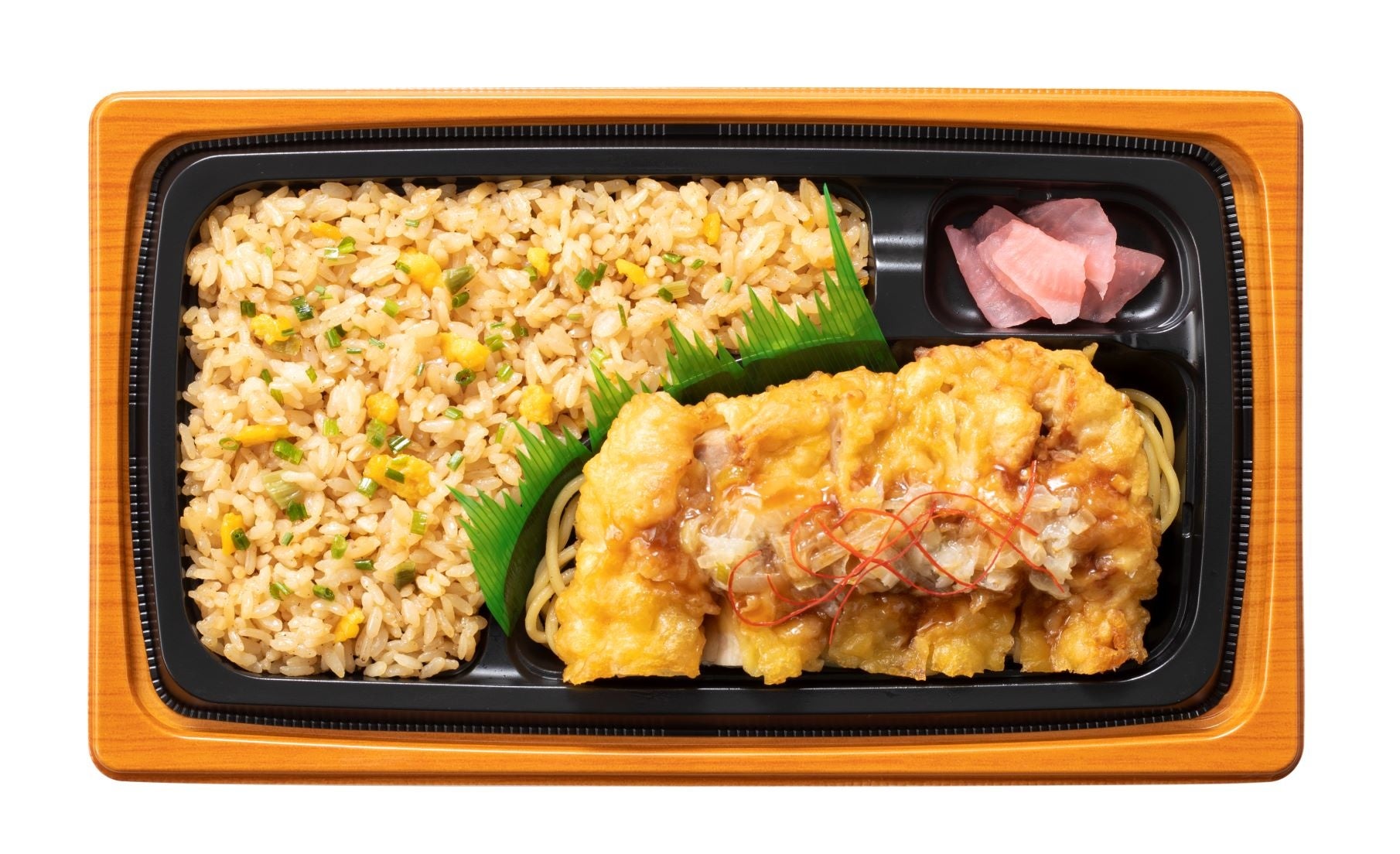 【内容】中華料理で人気の油淋鶏と炒飯を組み合わせたお弁当です。清酒に漬け込んでしっとりジューシーに仕上げた鶏唐揚げにネギや生姜など香味野菜を使用したさわやかな酸味とコクが特徴のタレをかけて食べる油淋鶏です。香味野菜の風味が口に入れた瞬間にふわっと広がります。