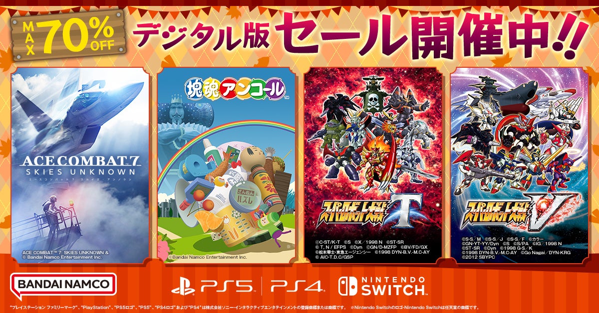 バンダイナムコエンターテインメント『デジタル版セール』開催中!「ACE COMBAT™ 7: SKIES UNKNOWN」や「スーパーロボット大戦」シリーズなど、DL版ゲームが最大70%OFF!
