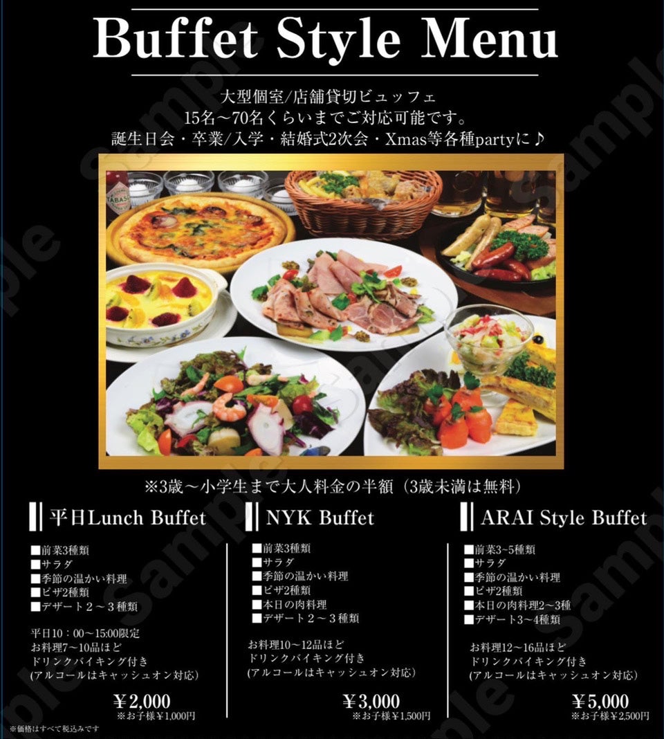 大型個室・店舗貸切ビュッフェのご用意もございます。