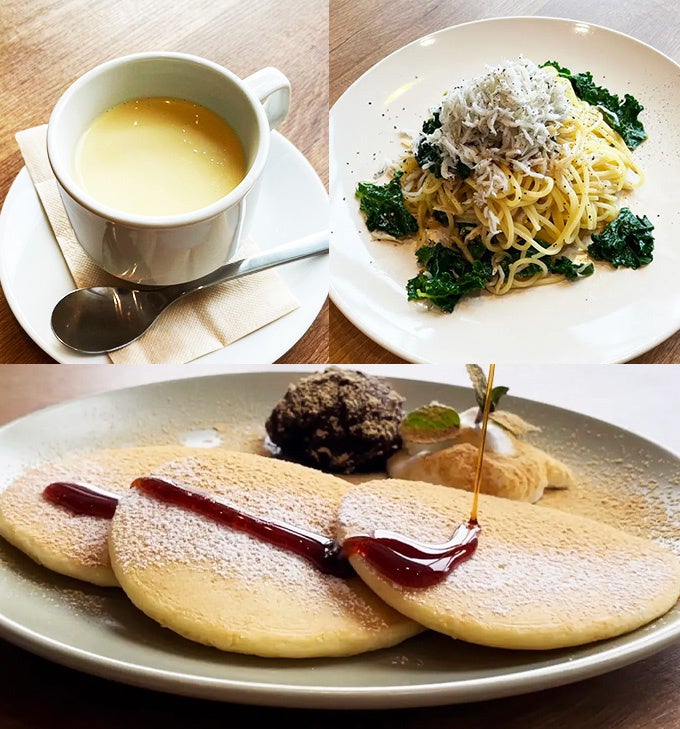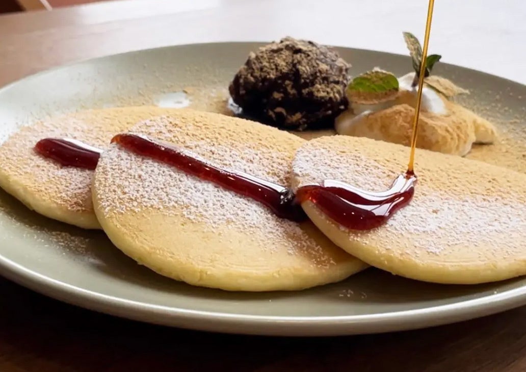 - 黒蜜きな粉のパンケーキ・小倉あんバター添え