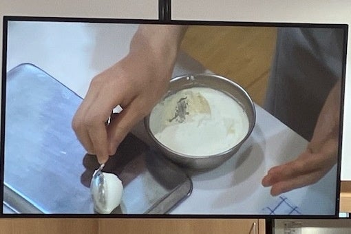 初参加となる当ホテルからは、若手のパティシエによる日常業務の紹介、パティシエを目指すきっかけになったもの、仕事のやりがいや苦労したことについてなどの講演と、調理経験で培った技術を実演し、参加者の皆さまにも実際に体験していただきました。熱心に話に耳を傾け、個別に質問してくださる学生や、実体験では生クリームをクネル(※)で綺麗に成形することが、簡単そうで難しいことを実感しながらパティシエという職業に触れていただける有意義な時間となりました。