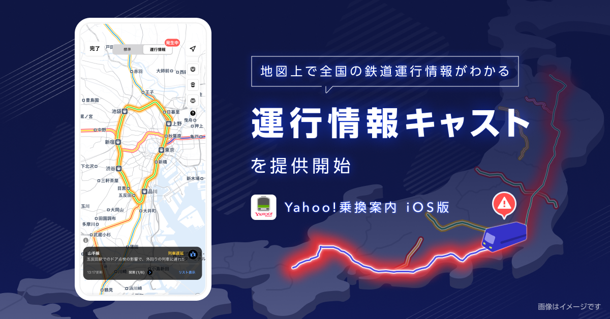 【Yahoo!乗換案内】全国の鉄道の運行情報を地図上で確認できる「運行情報キャスト」を提供開始