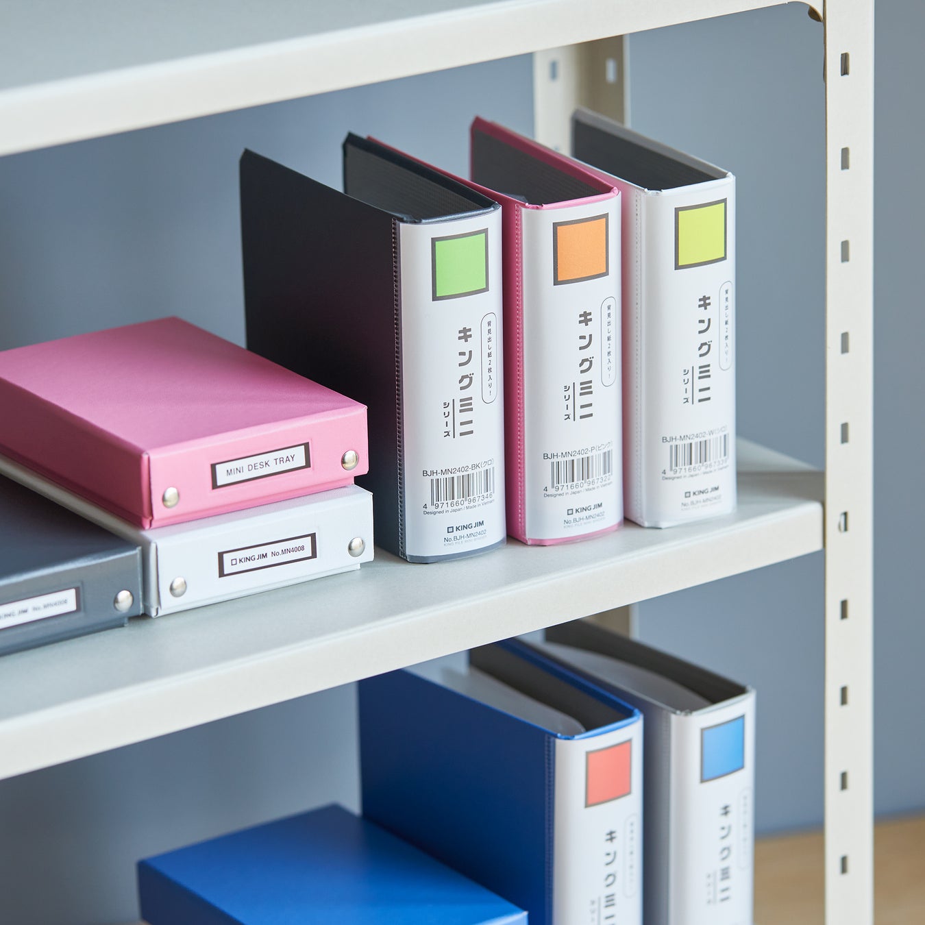 オフィスで一度は目にしたことがあるキングジム製品が、便利で可愛いミニチュアサイズになった「キングミニ」シリーズ。文具女子博限定で「ミニバインダー」「ミニデスクトレー」に白・黒・ピンクの限定カラーを追加しました。カード・名刺・チェキなどの収納にぴったりです。