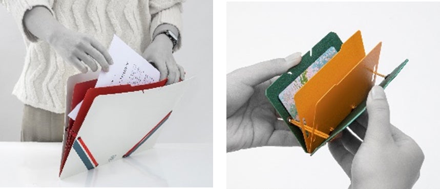 折りたたんでスマートに持ち運べる、便利な二つ折りタイプ。ゴムバンド付きでしっかり固定。日本で販売している二つ折りクリアーファイル「コンパック」をベースにしています。
