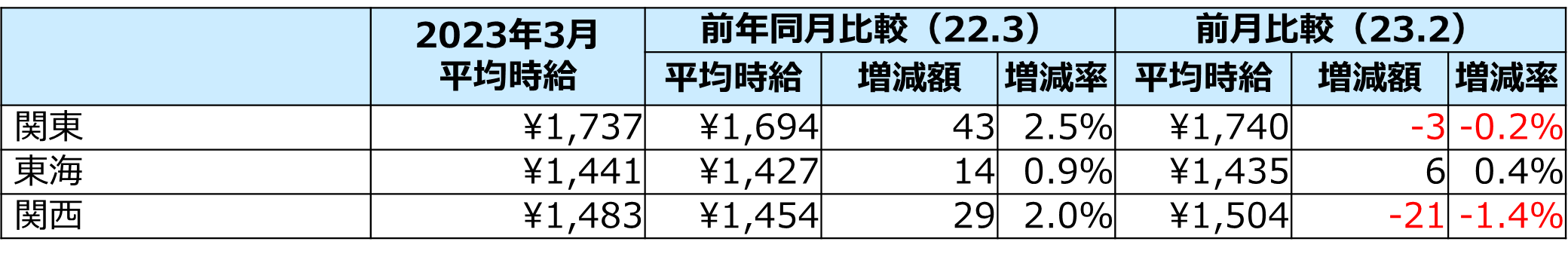 3月度のエリア別平均時給は、全エリアで前年同月比プラスを記録。