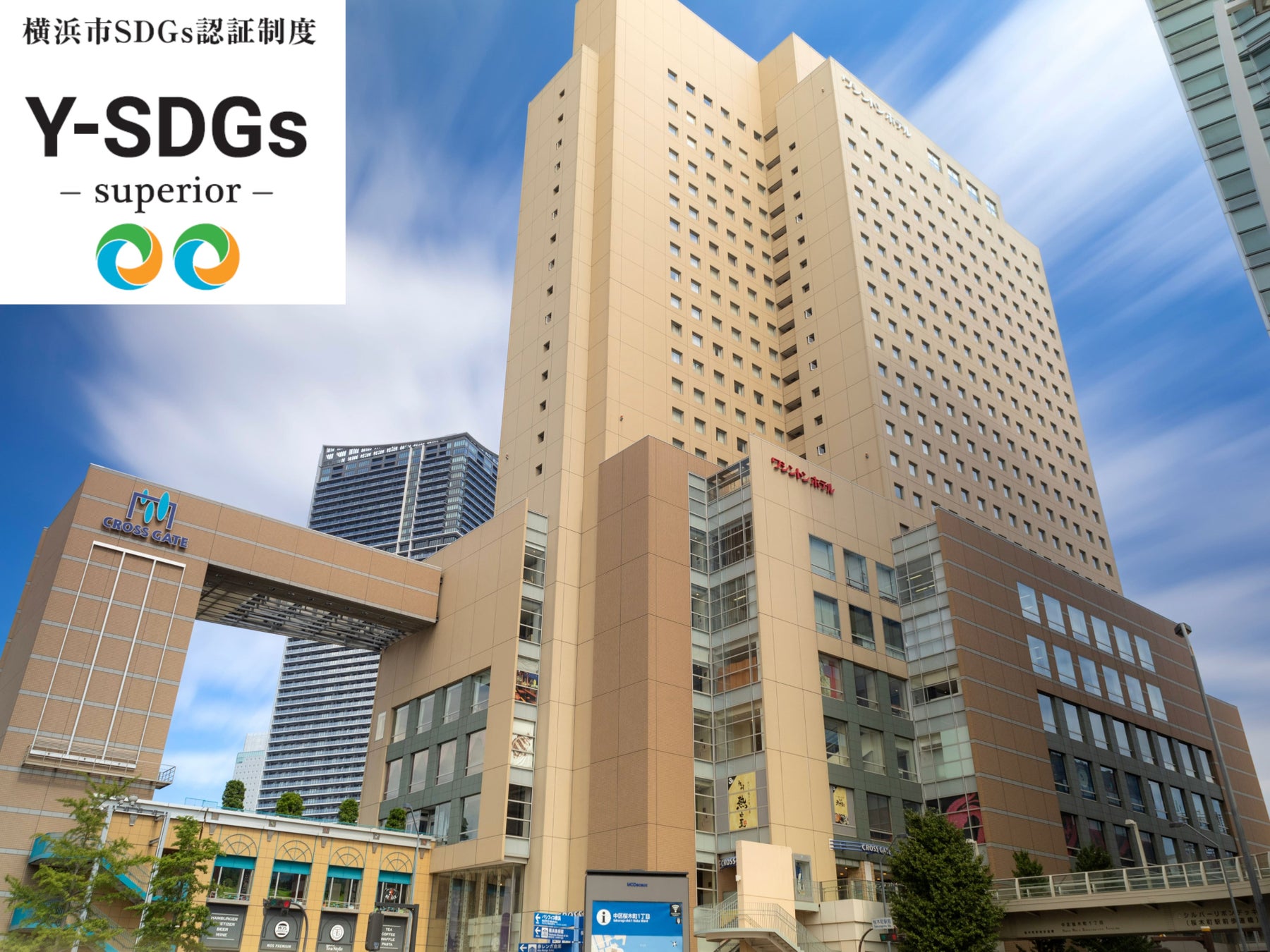 ■横浜桜木町ワシントンホテルでは「地元横浜企業コラボプラン」を通じて、地域経済の活性化と発展に取り組んでいます。この取り組みが評価され、横浜市がSDGs達成に向けて活動している企業等を「環境」、「社会」、「ガバナンス」、「地域」の 4 分野 30 項目で評価し、取組状況が優れている企業に対して認証を与えるY‐SDGs 認証制度において、高いレベルで取組を進めている事業者のみに与えられる上位認証「superior」に認定されました。