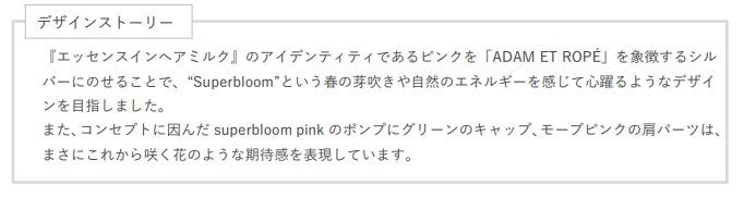 今回「ADAM ET ROPÉ」とのコラボレーションは、異例の降雨などにより、乾燥地帯に大量の野花が咲く十数年に一度しか起きないと言われている伝説的な現象として知られる“Superbloom”から着想。新たな春を迎え入れてくれるような限定デザインにて、新生活に不安が募る心にも凛としたみずみずしさを湛えて、毎日のヘアケアルーティンを通して特別な体験をお届けします。