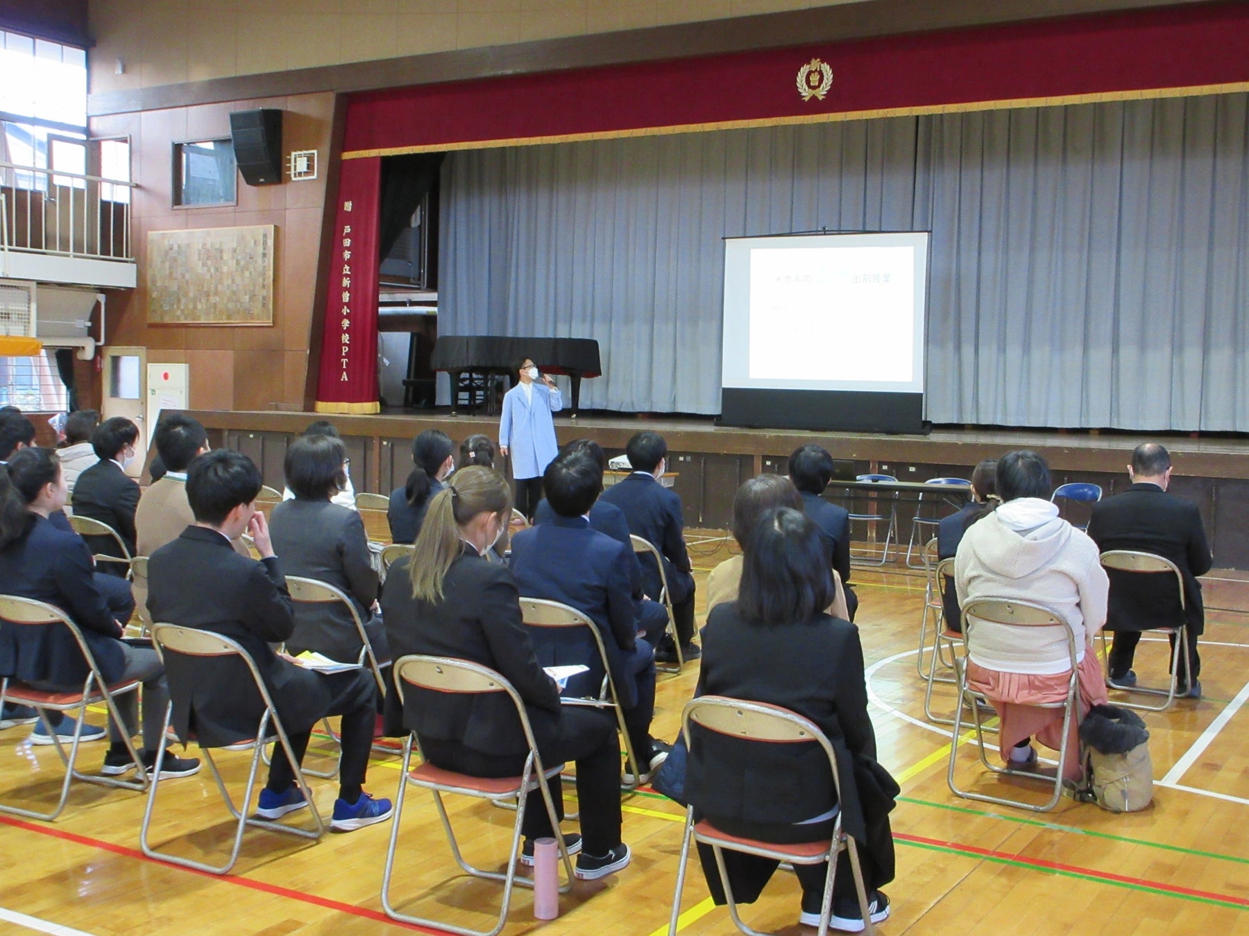 「「子供の目の健康について」の演題で、クイズや目に良い1日の過ごし方など、わかりやすく興味をひく内容でした。具体的にどう行動すれば目によい生活ができるか、ただ、タブレットやゲームの時間を短くするのではなく、日常生活の少しの変化でも目に良い生活ができるのだと学ぶことができました。今回は保護者と教職員対象の学校保健委員会で、保護者、教員共に大変好評でした。今後、子供たちへの指導にもつながるとても興味深い内容でした。ありがとうございました。」