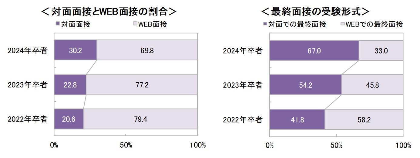 ○面接形式は依然WEB主流も、最終面接は「対面」が6割強に(67.0%)