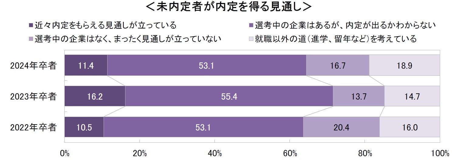 ○未内定者の約7割(69.8%)は「内定の見通しが立っていない」