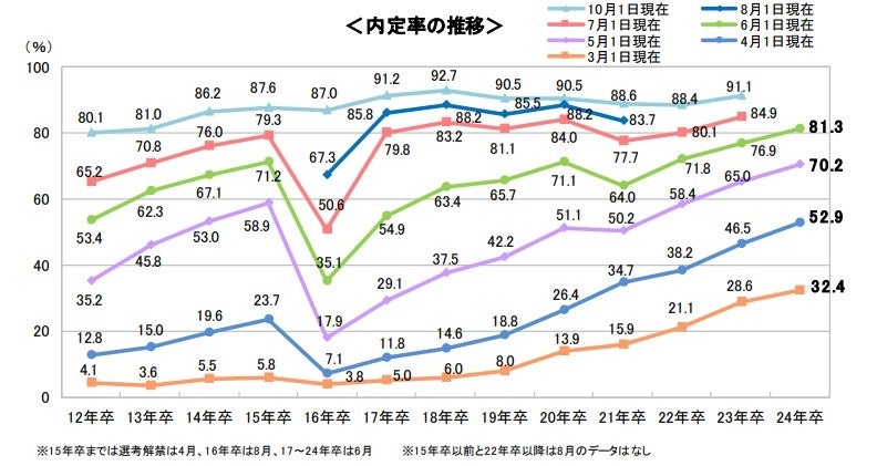 調査対象:2024年3月に卒業予定の大学4年生(理系は大学院修士課程2年生含む)