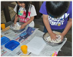 家族で力を合わせ薪で火をおこし、飯ごう炊さんやカレー作りに 挑戦します。デザートにはコロダッチを使って焼きリンゴを作ります。