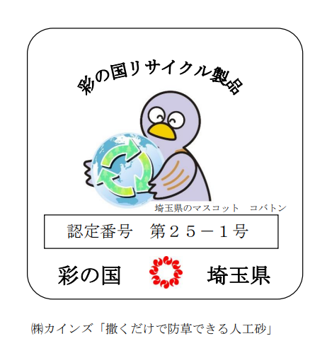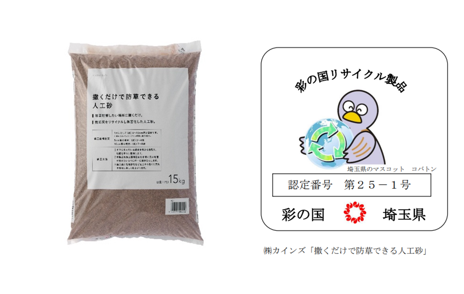 株式会社カインズ(本部:埼玉県本庄市、代表取締役社長 CEO:高家 正行)は、カインズオリジナル商品「撒くだけで防草できる人工砂」が、主に埼玉県内で発生した循環資源を利用し、環境基準等の一定基準を満たした製品として、埼玉県の「彩の国リサイクル製品」に認定されましたのでお知らせします。