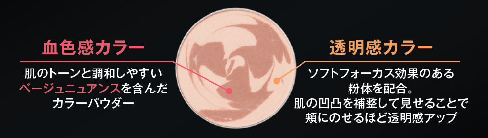 エアリーなマット質感で、さらっと軽いつけ心地。血色ラテカラーのマットチーク。