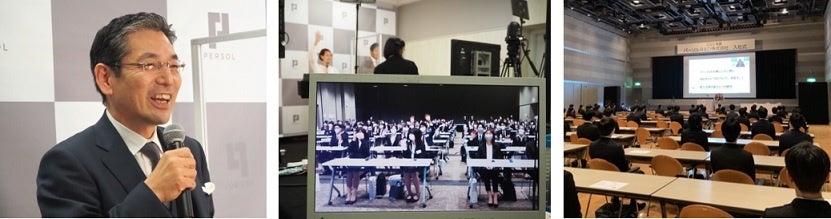 実施している17社の新入社員約1,000名が参加、アンケートシステムを活用した役員への質問コーナーに加え、
