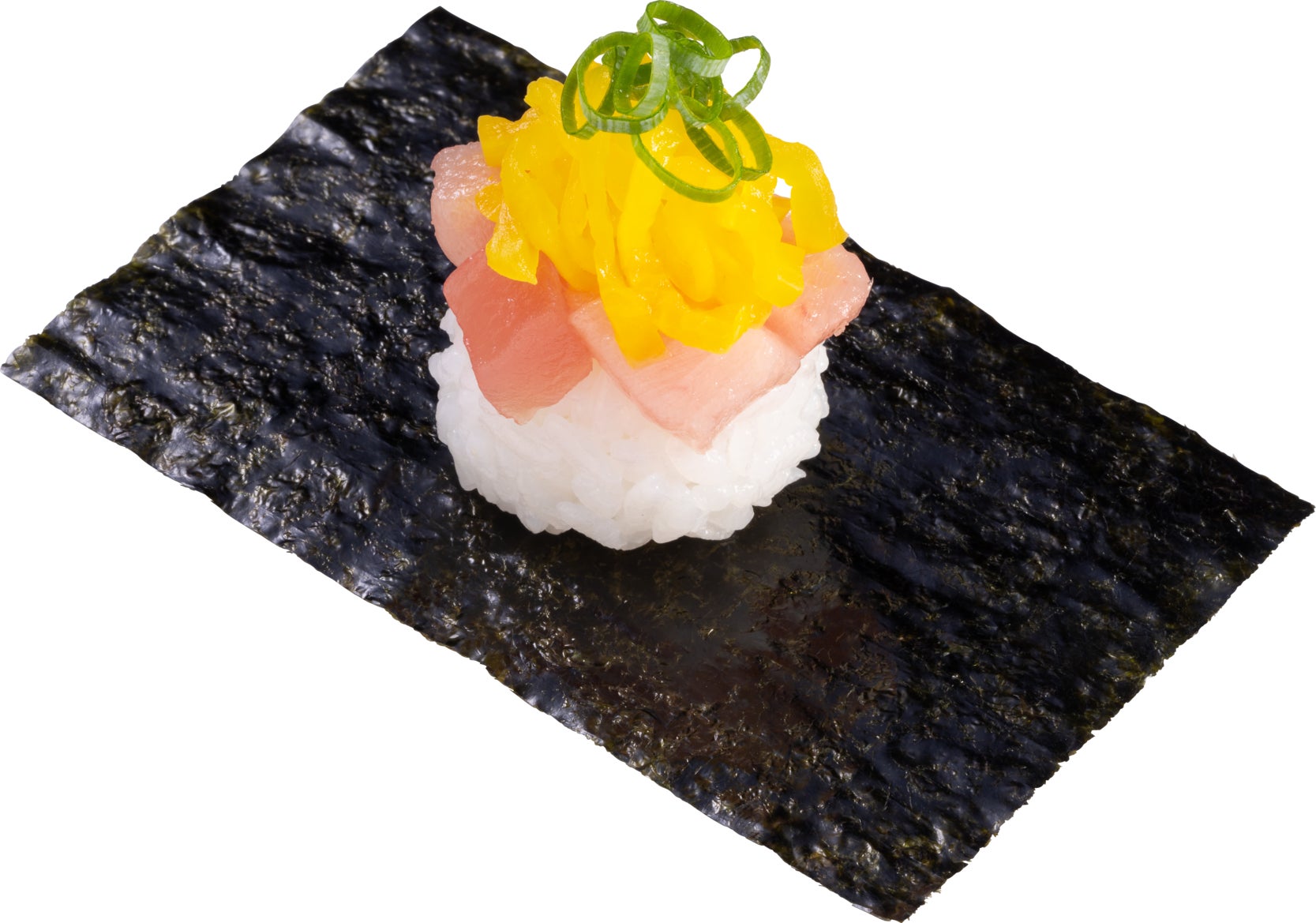 脂のりが良く、滑らかな舌触りの「とろ」と、たくあんの独特な味わいや歯ごたえが楽しめます。