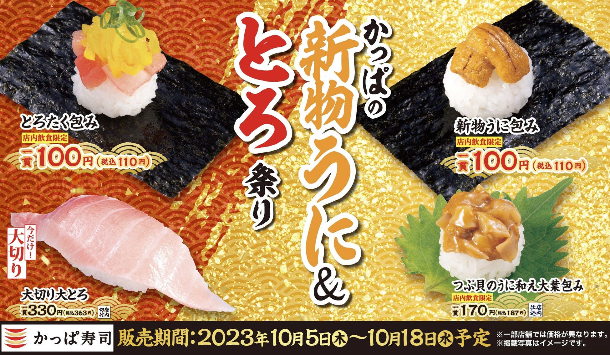 かっぱ寿司、今シーズンの「新物うに」や人気ネタ「とろ」を一皿110円よりご提供 食欲の秋を彩る『かっぱの新物うに&とろ祭り』開催