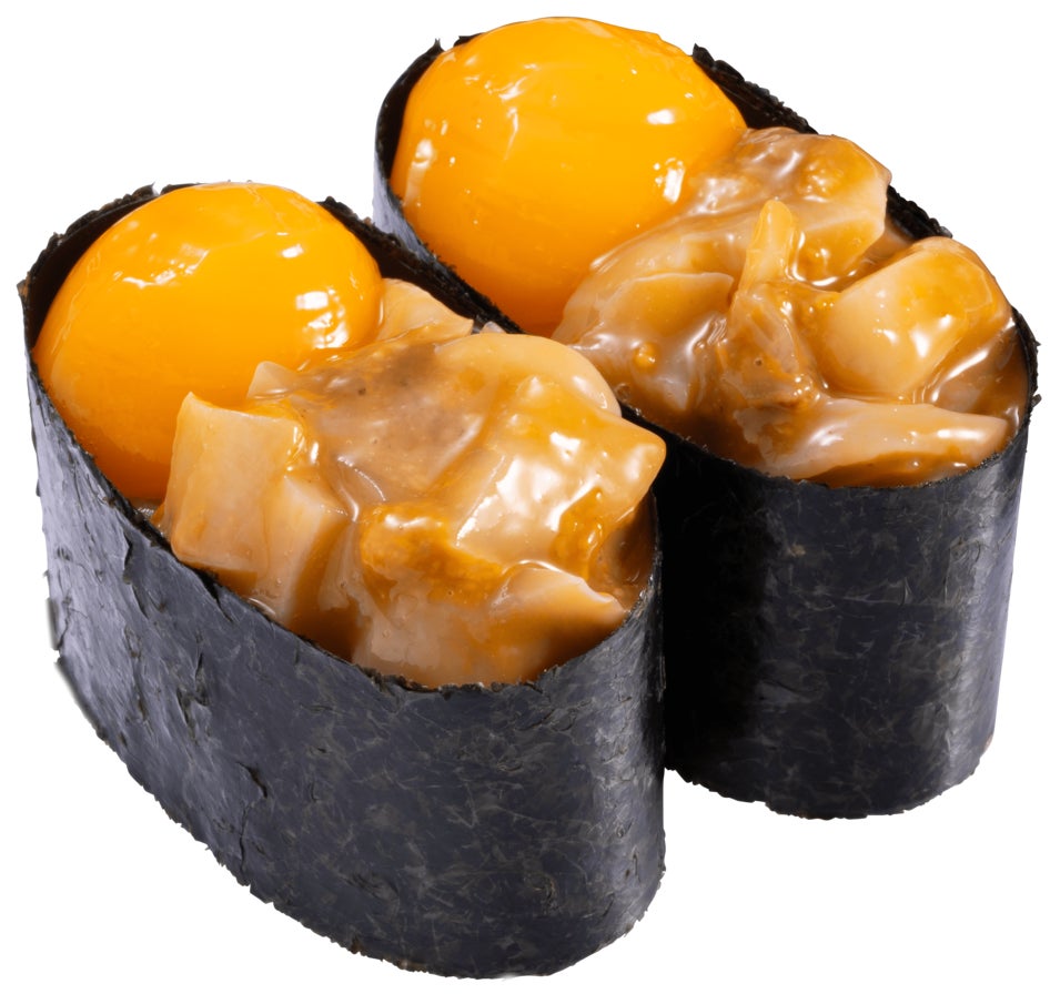 濃厚な旨みの「新物うに」と、ぷちぷち食感と旨みある「いくら」を一皿で楽しめる軍艦です。