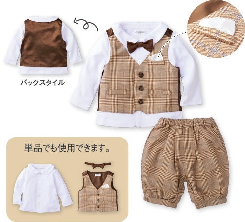 取り外しタイ付き 3点スーツセット |
