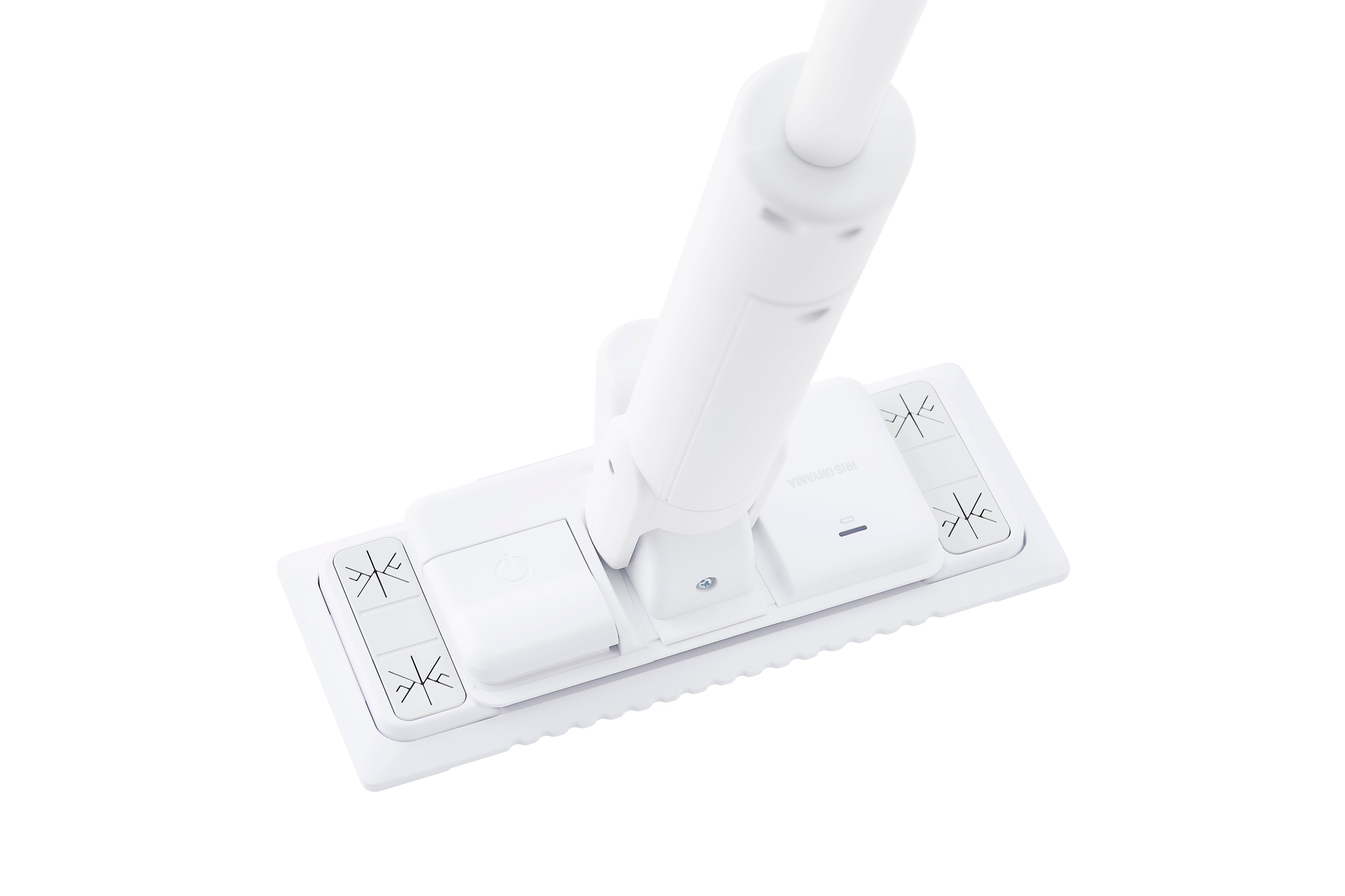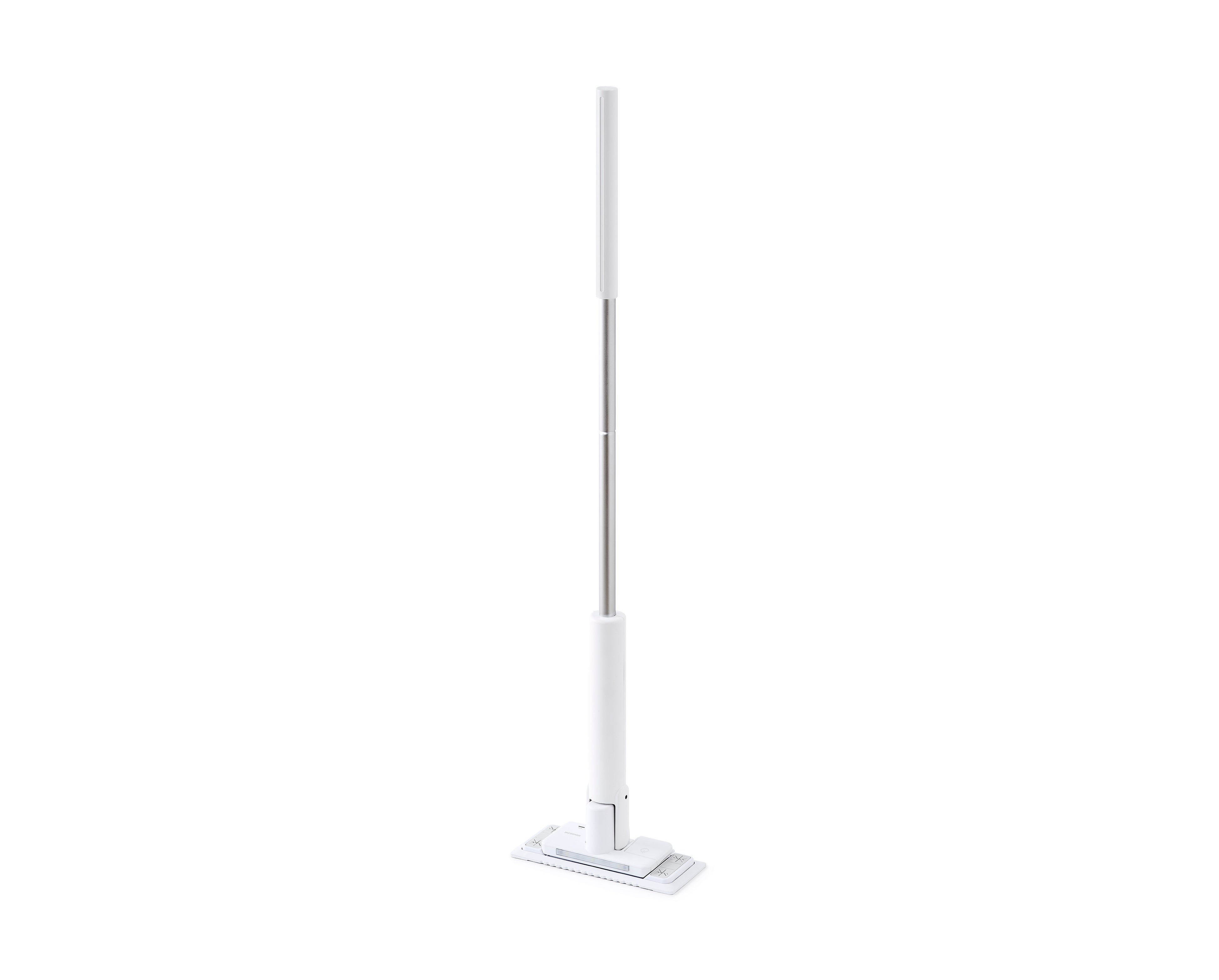 ヘッドの先端に搭載したLEDライトにより、家具やベッドの下など暗くて見えづらい場所でも汚れを確認できます。ヘッドは四角い形のため、汚れが溜まりやすい部屋の隅まで掃除できます。高速前後振動の幅を最適化し、手元のブレを少なくしたことに加え、製品質量は1.0kgと扱いやすいため、床だけでなく窓や網戸などの掃除にも活用できます。さらに、付属のマイクロファイバークロス※4を装着すれば、壁(※5)、タイルの溝や凹凸などの汚れもしっかり捉えてきれいにできます。