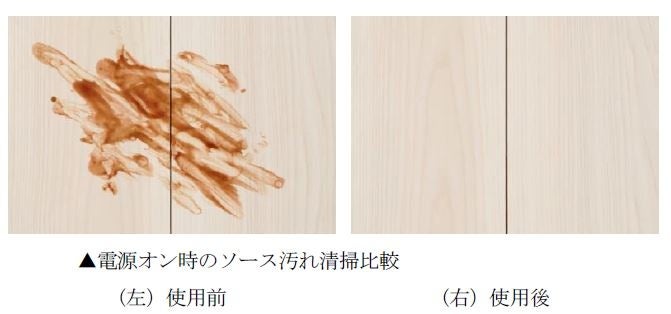 今回発売する「電動フロアワイパー」は、ヘッド部分に使い捨てウェットシート(※2)を装着し、足元の電源ボタンを踏むだけで容易に水拭きできます。毎分約1,000回の高速前後振動により、キッチンの油汚れ(※3)や食べこぼし、ソースやケチャップなどが乾燥した汚れも、短時間でしっかり落とせます。さらに、視認しづらい皮脂汚れもひと拭きで落とせるため、床のざらつきやベタつきも取り除けます。