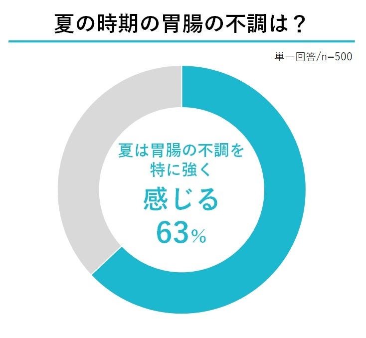 また、約6割が「夏は胃腸の不調を特に強く感じる」(63%)と回答しています。
