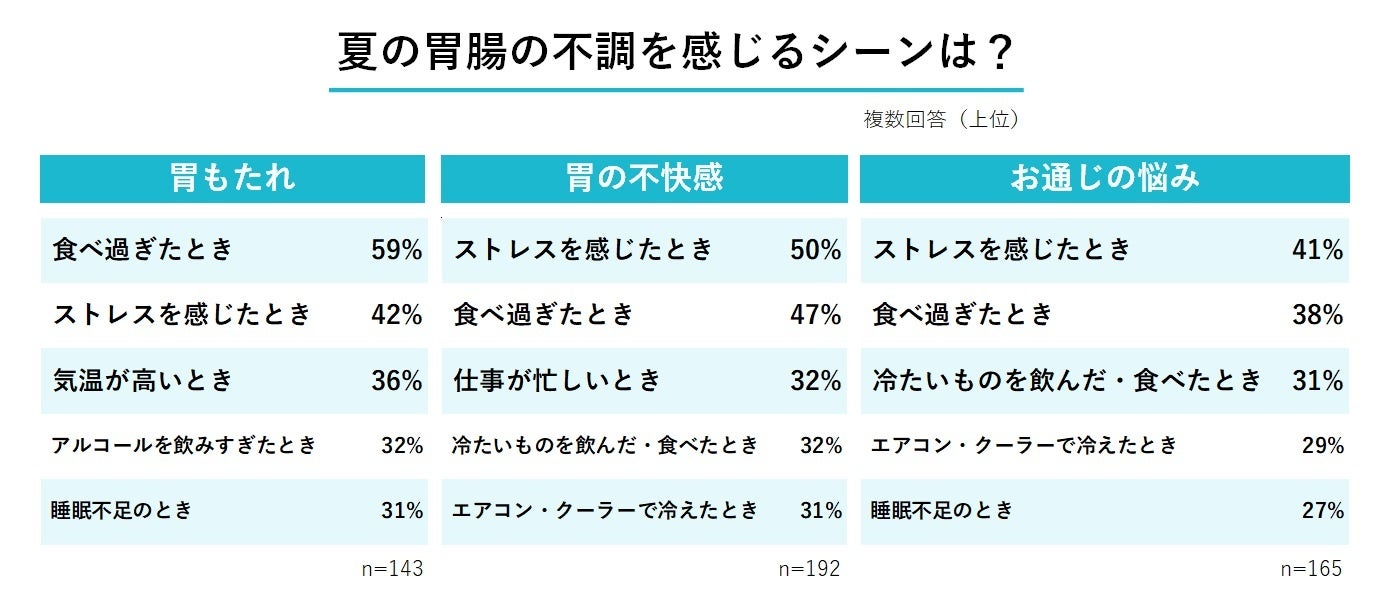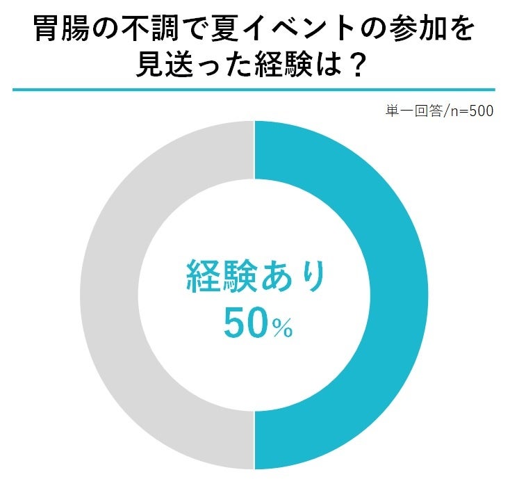 夏本番、“夏の胃腸”にお困り多数?約4割が「胃腸に不調」を毎夏実感。不調のために「夏イベント参加見送り」… 半数が経験あり