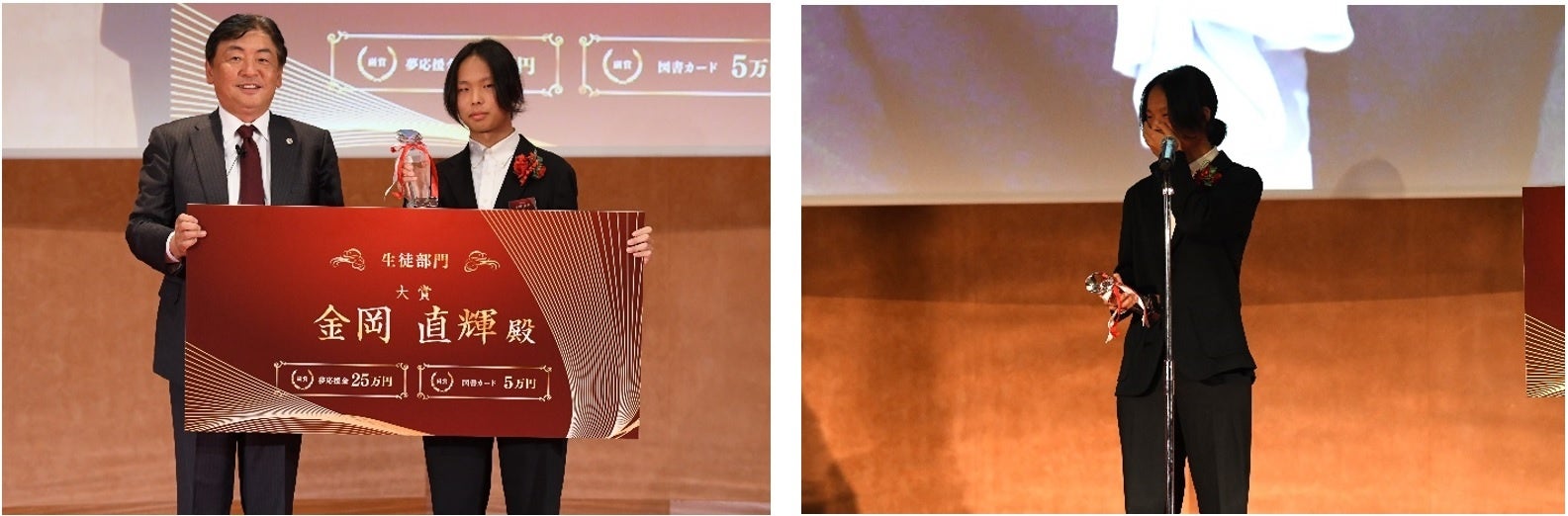 「やる気の科学研究所賞」受賞者(ファイナリスト)には「夢応援金」として賞金5万円と図書カード5万円分、「大賞」受賞者には賞金25万円と図書カード5万円分が授与されました。