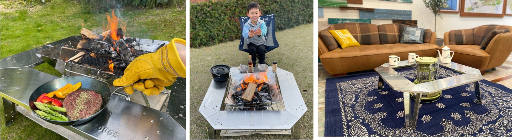 組立てもお手入れも簡単に囲炉裏スタイルを楽しめる「イージーステン囲炉裏テーブル」を、アウトドアライフはもちろん、ご家庭での団らん時間にぜひともご活用ください。
